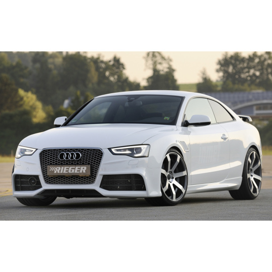 Přední nárazník značky Rieger Tuning určený pro vozy Audi A5 S5 (Typ B8, B81) ve verzích kabriolet, kupé a Sportback z období po faceliftu (10/2011–06/2016). Vyroben z vysoce kvalitního plastu ABS bez povrchové úpravy, který je připraven k lakování. Sportovní design nárazníku podtrhuje elegantní charakter modelů S5 a poskytuje přesné spasování s karoserií.