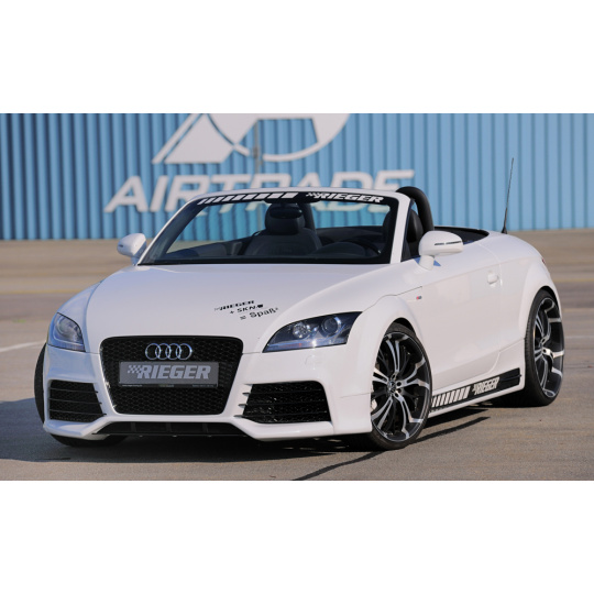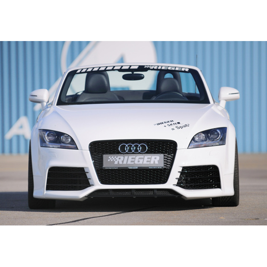 Přední nárazník od výrobce Rieger Tuning určený pro vozy Audi TT (Typ 8J) ve verzích kupé a roadster vyráběné od 09/2006. Vyroben z odolného ABS plastu bez povrchové úpravy – připraveného k lakování. Díky preciznímu zpracování nabízí perfektní lícování a zvýrazňuje sportovní charakter vozu.