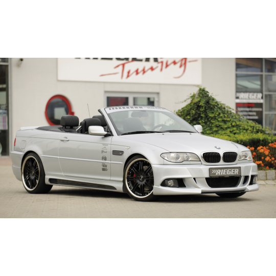 Přední nárazník značky Rieger Tuning, určený pro vozy BMW řady 3 (Typ E46) ve verzích sedan a touring po faceliftu (modely vyráběné od 02/2002). Vyroben z vysoce kvalitního ABS plastu bez povrchové úpravy, který vyniká pevností, pružností a připraveností k lakování. Díl dokonale zapadá do designu vozidla a zvýrazňuje jeho sportovní charakter.