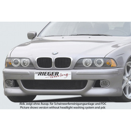 Rieger přední nárazník pro BMW řada 5 E39 sedan, touring, plast ABS bez povrchové úpravy, s držáky originálních mlhových světlometů, pro vozy s ostřikovači předních světlometů a parkovacím asistentem (PDC)