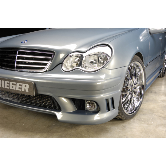 Přední nárazník značky Rieger Tuning je navržen pro vozy Mercedes-Benz třídy C druhé generace (typ W203), vyráběné od roku 05/2000, v karosářských verzích sedan a T-model (kombi). Tento sportovní nárazník zajišťuje perfektní lícování, moderní vzhled a je vyroben z odolného plastu ABS bez povrchové úpravy – připraveného pro lakování.