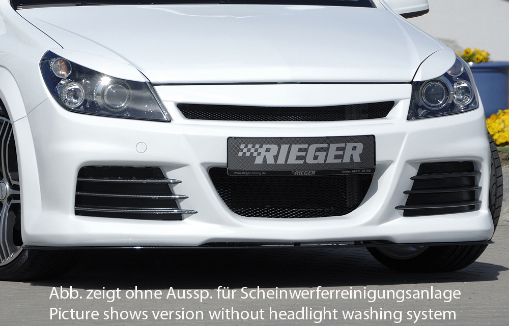Rieger přední nárazník pro Opel Astra H vč. GTC, Twin-Top 3-dvéř., 5-dvéř., caravan, hatchback, kabriolet, plast ABS bez povrchové úpravy, s malým výřezem pro ostřikovače předních světlometů