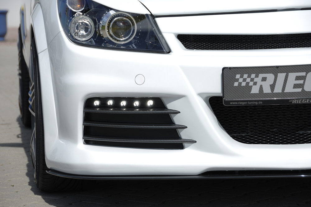 Rieger přední nárazník pro Opel Astra H vč. GTC, Twin-Top 3-dvéř., 5-dvéř., caravan, hatchback, kabriolet, plast ABS bez povrchové úpravy, s výřezy na světla pro denní svícení