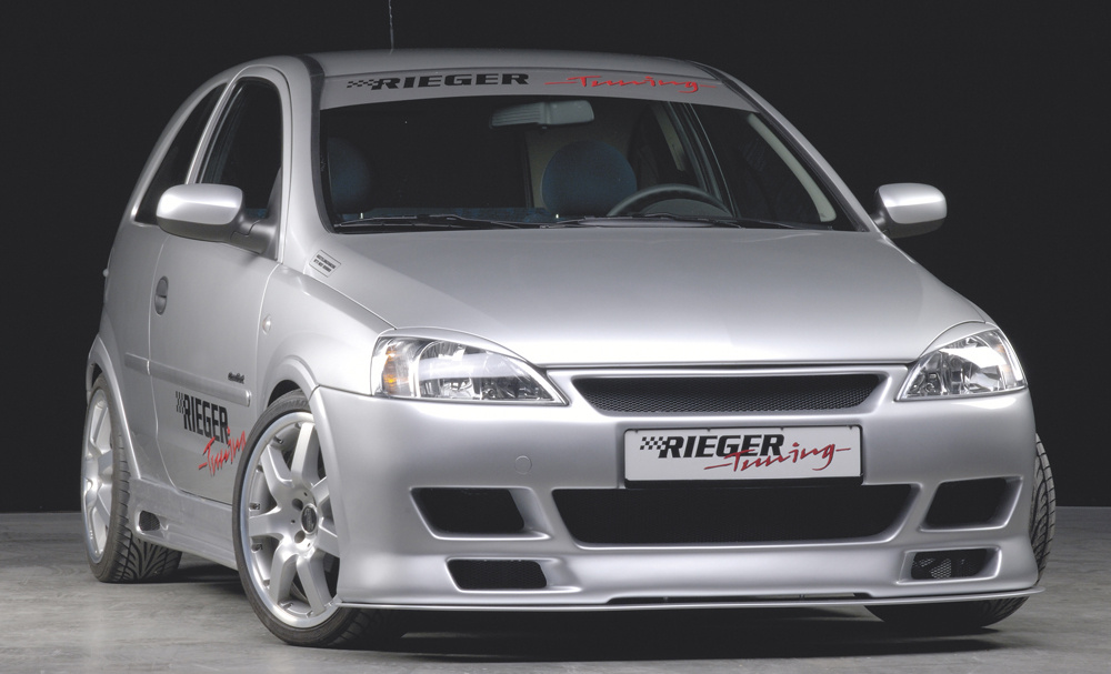 Přední nárazník od renomovaného výrobce Rieger Tuning je určen pro vozy Opel Corsa C včetně verzí po faceliftu. Pasuje na karosářské varianty 3-dveřová a 5-dveřová vyráběné v období 09/2000–05/2003 a od 06/2003. Vyroben z kvalitního plastu ABS bez povrchové úpravy – připraveno k lakování. Design Rieger zvýrazní sportovní charakter vozu a zajistí přesné spasování s karoserií.