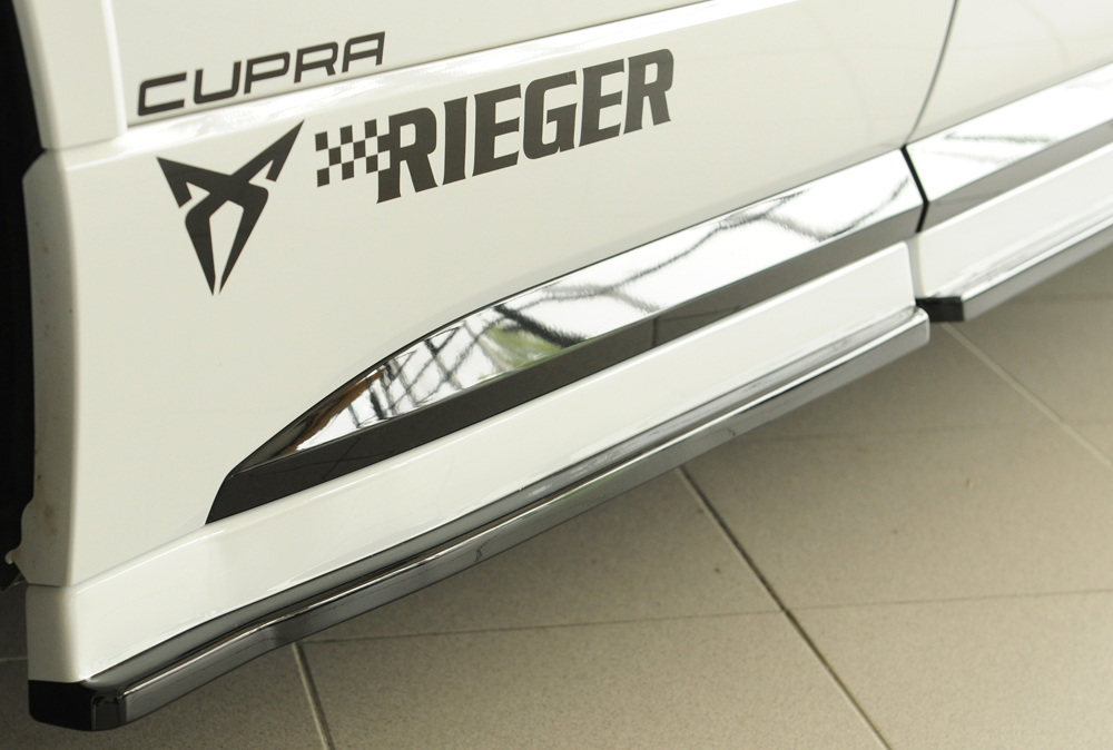 Spoiler pod boční práh od renomovaného výrobce Rieger Tuning je určen pro vůz Seat Ateca Cupra (Typ 5FP). Pasuje na modely vyráběné v období 09/2018–07/2020. Vyroben z kvalitního plastu ABS bez povrchové úpravy – připraveno k lakování. Produkt má certifikát TÜV/ABE a zaručuje precizní zpracování, přesné spasování a zvýraznění sportovního vzhledu vozu.