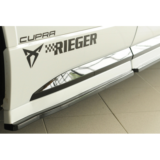 Spoiler pod boční práh od renomovaného výrobce Rieger Tuning je určen pro vůz Seat Ateca Cupra (Typ 5FP). Pasuje na modely vyráběné v období 09/2018–07/2020. Vyroben z odolného plastu ABS bez povrchové úpravy – připraveno k lakování. Produkt má certifikát TÜV/ABE a zaručuje precizní zpracování, přesné spasování a zvýraznění sportovního charakteru vozu.