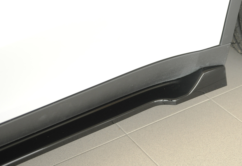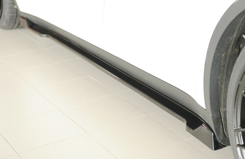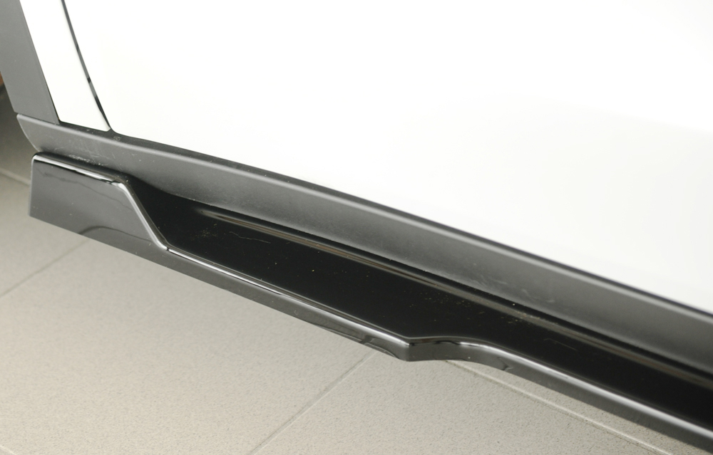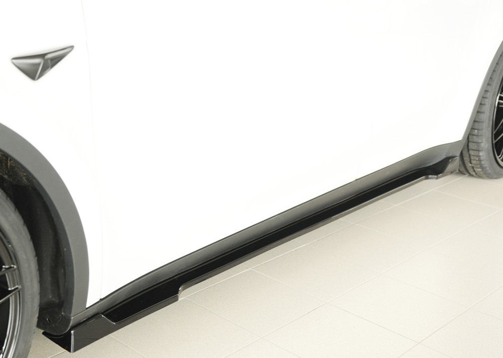 Boční práh od Rieger Tuning pro vůz Tesla Model Y (Typ 003). Určeno pro modely vyráběné od 03/2020. Vyroben z plastu ABS lakovaného do černé lesklé barvy.