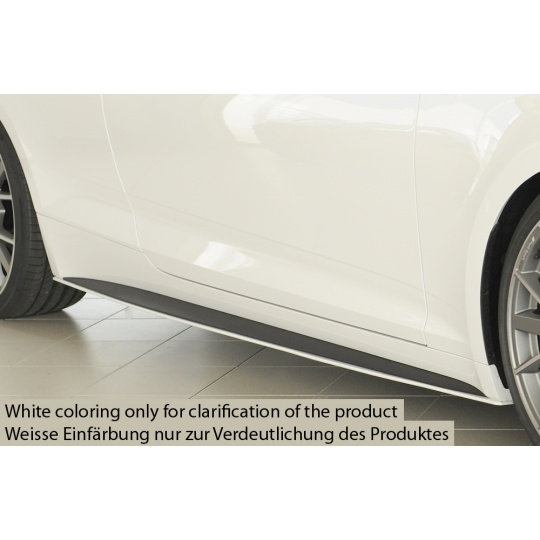 Boční práh od Rieger Tuning pro sportovní verze Audi A5 S5 (Typ B9, F5) – kabriolet nebo kupé. Určeno pro modely 11/2016–12/2019 před faceliftem. Materiál plast ABS bez povrchové úpravy.