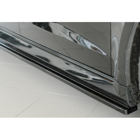 Boční práh od Rieger Tuning pro Audi RS3 (Typ 8V, sportback 8VA / 8VF), modely vyráběné od 02/2017. Vyroben z plastu ABS a lakován do černé lesklé barvy.
