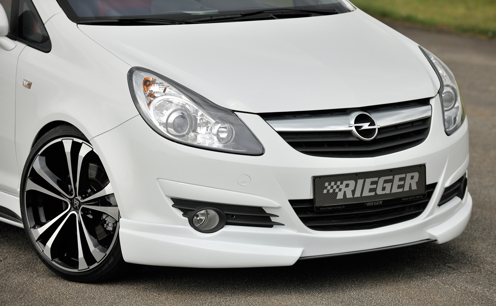 Rieger spoiler pod přední nárazník pro Opel Corsa D 3-dvéř., 5-dvéř. před faceliftem, r.v. 07/06-12/10, plast ABS bez povrchové úpravy, bez žebrování