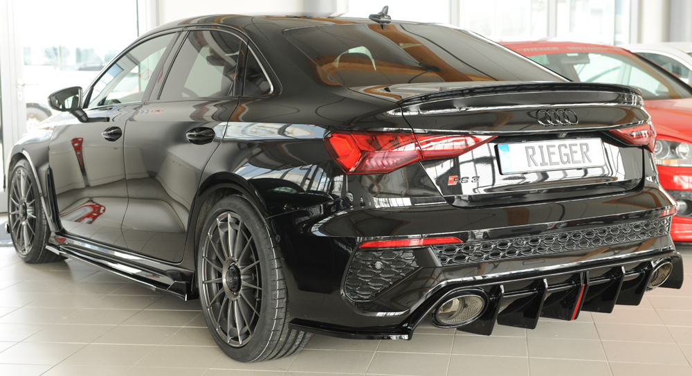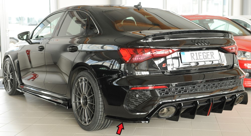 Rieger spoiler pod zadní nárazník na levé straně pro Audi RS3 GY Sportback, plast ABS lakovaný do černé lesklé barvy