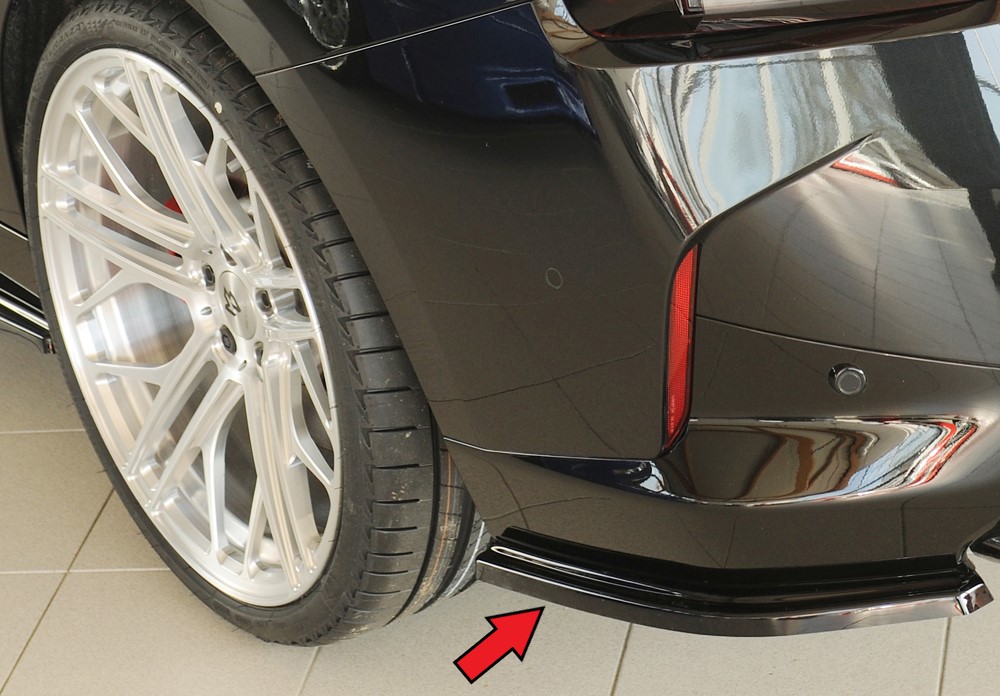 Rieger spoiler pod zadní nárazník na levé straně pro BMW řada 2 G42 kupé r.v. 07/21-, plast ABS lakovaný do černé lesklé barvy