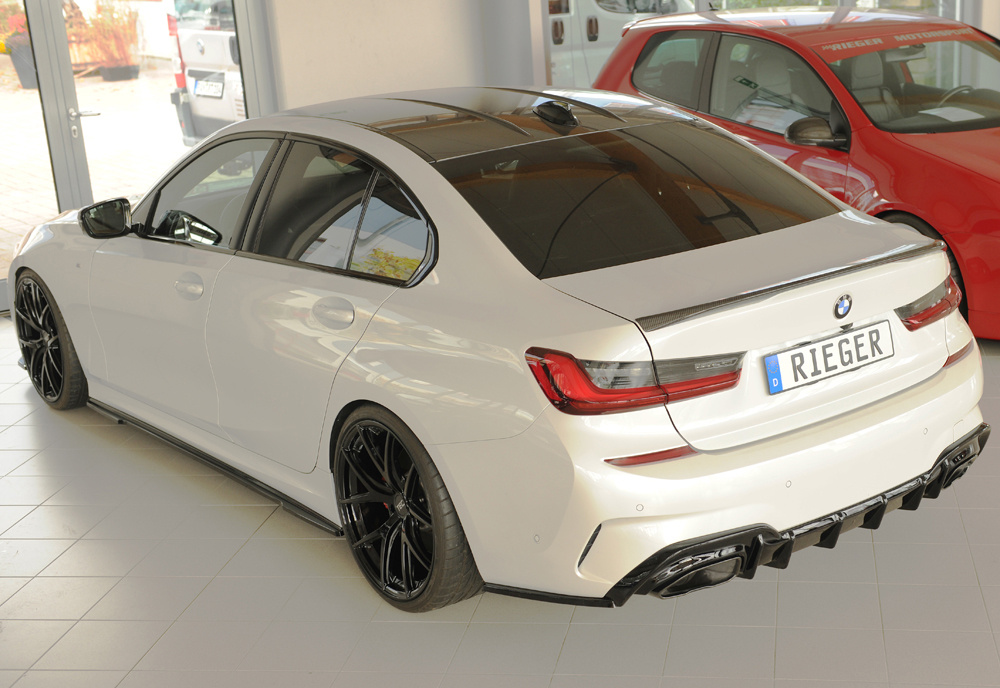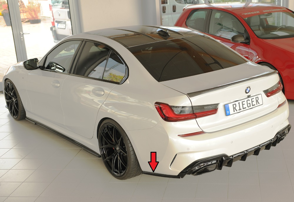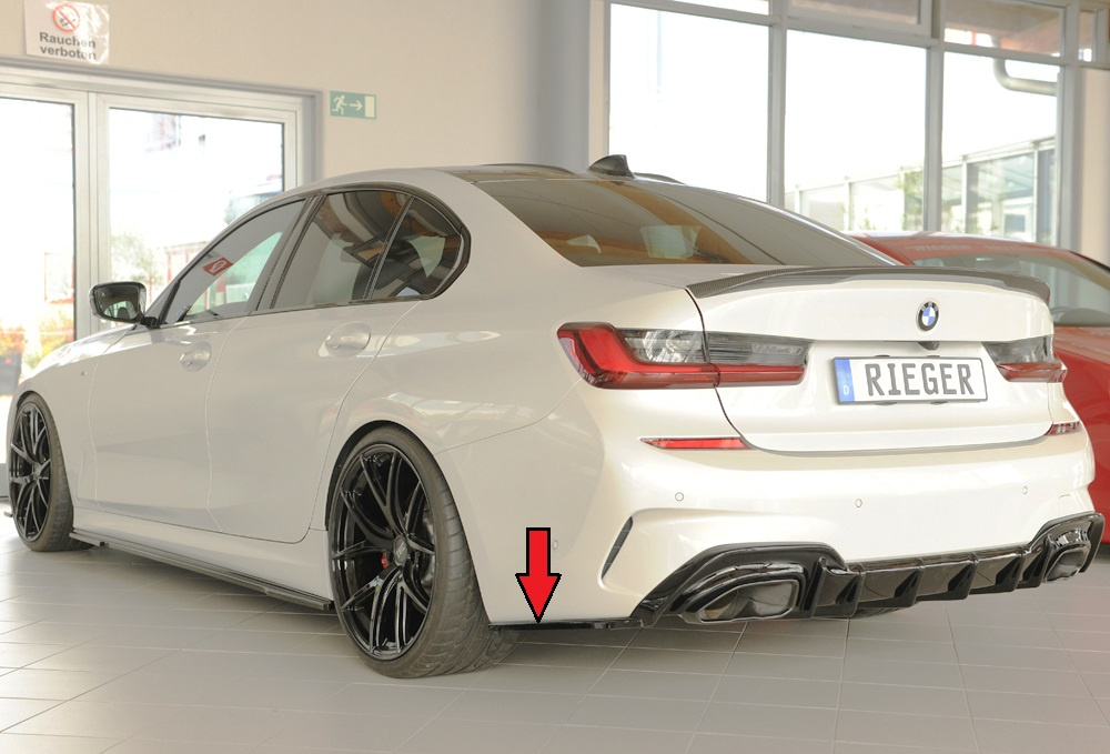 Rieger spoiler pod zadní nárazník na levé straně pro BMW řada 3 G21 touring r.v. 03/19-06/22, plast ABS lakovaný do černé lesklé barvy