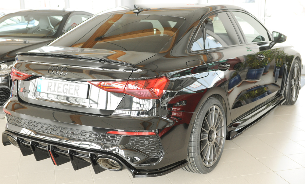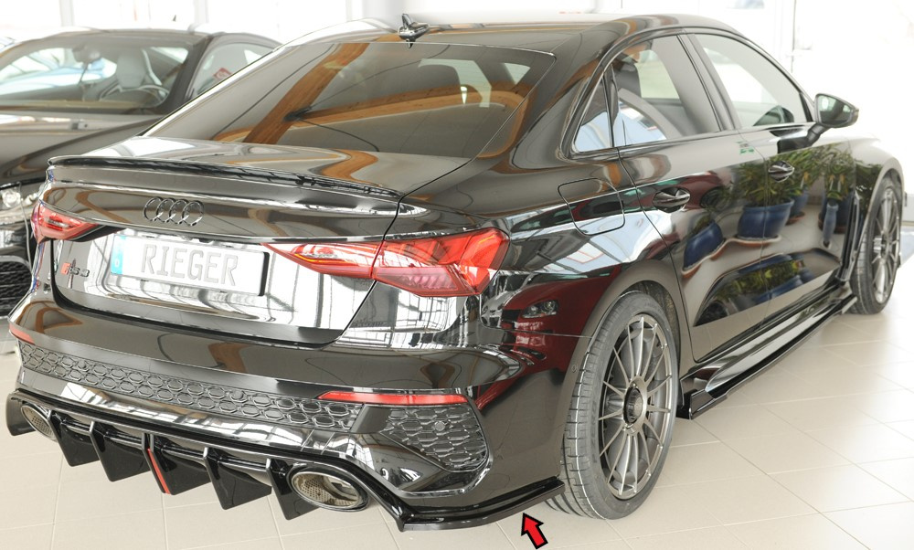Rieger spoiler pod zadní nárazník na pravé straně pro Audi RS3 GY Sportback, plast ABS lakovaný do černé lesklé barvy