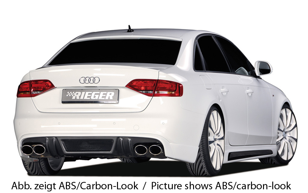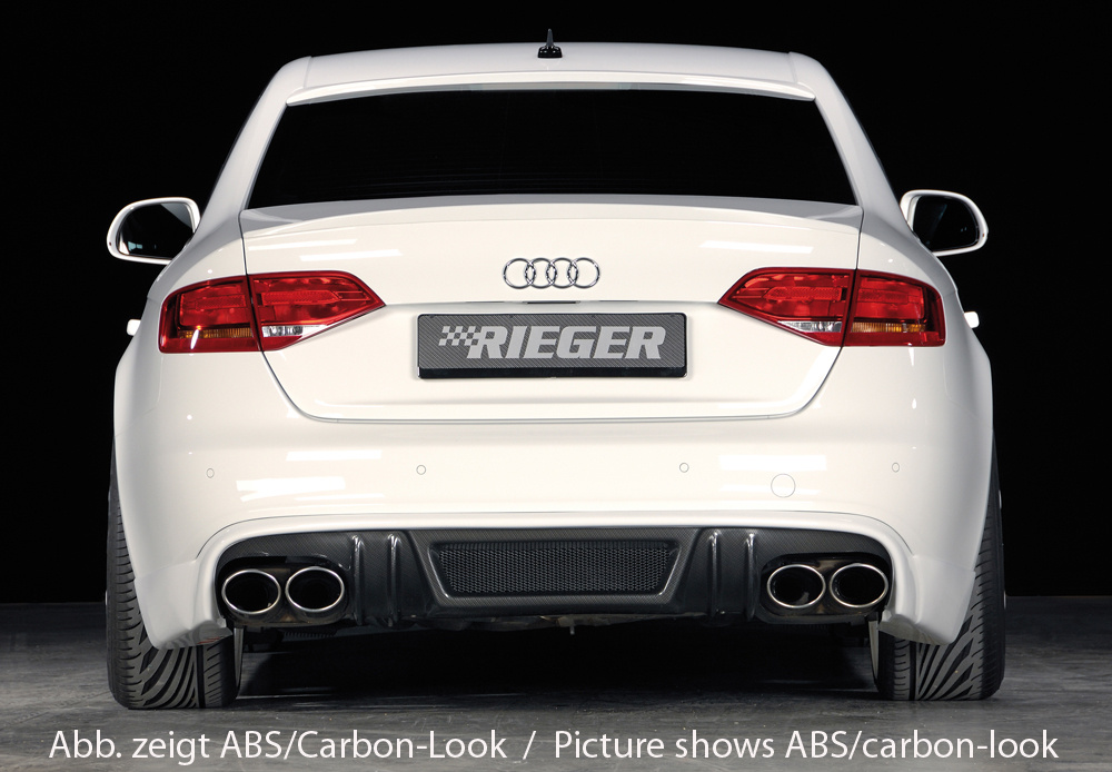 Rieger spoiler pod zadní nárazník pro Audi A4 B8, B81 avant, sedan před faceliftem r.v. 11/07-12/11, plast ABS bez povrchové úpravy, S-Line, pro dvojité koncovky na obou stranách 4x115x85 mm