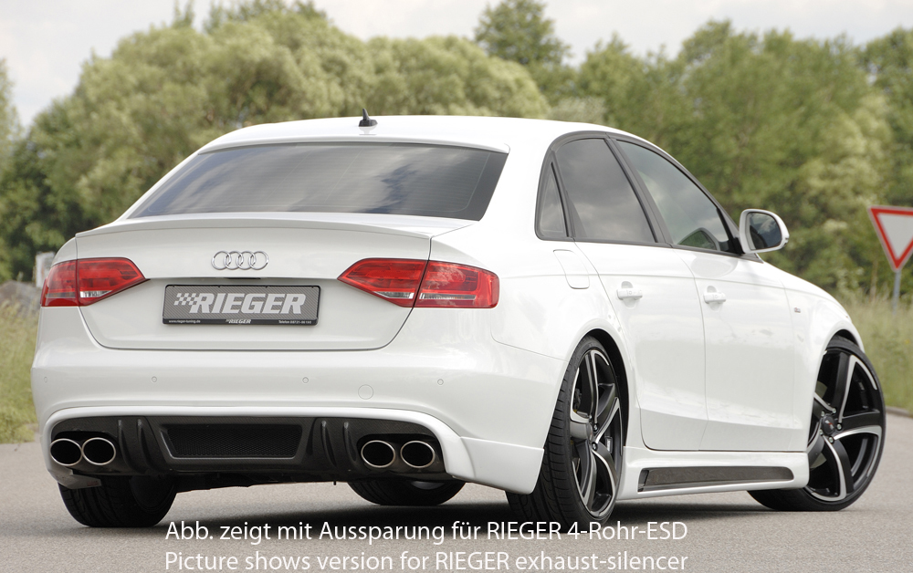 Rieger spoiler pod zadní nárazník pro Audi A4 B8, B81 avant, sedan před faceliftem r.v. 11/07-12/11, plast ABS s povrchovou úpravou Carbon-Look, S-Line, pro koncovky na obou stranách