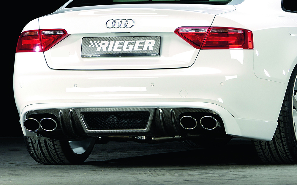 Rieger spoiler pod zadní nárazník pro Audi A5 B8, B81 kabriolet, kupé před faceliftem r.v. 06/07-07/11, plast ABS s povrchovou úpravou Carbon-Look, pro dvojité koncovky na obou stranách 4x115x85 mm