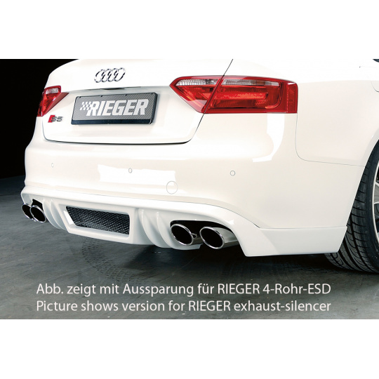 Rieger spoiler pod zadní nárazník pro Audi A5 S5 B8, B81 Sportback před faceliftem r.v. 06/07-07/11, plast ABS bez povrchové úpravy, S-Line, pro orig. koncovky na obou stranách