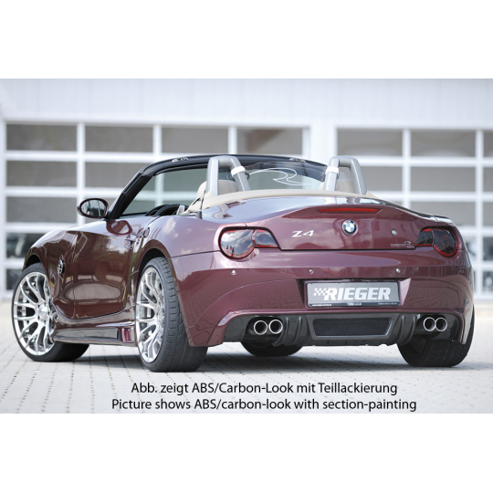 Rieger spoiler pod zadní nárazník pro BMW Z4 E85 roadster před faceliftem r.v. 02/03-12/05, plast ABS bez povrchové úpravy, pro vozy s dvojitou koncovkou na obou stranách 4x76 mm