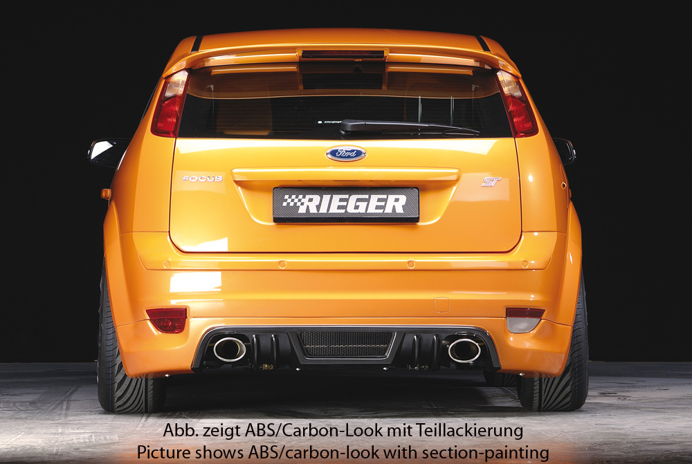 Rieger spoiler pod zadní nárazník pro Ford Focus 2 3-dvéř., 5-dvéř. před faceliftem r.v. 07/04-01/08, plast ABS s povrchovou úpravou Carbon-Look, pro vozy s koncovkami na obou stranách