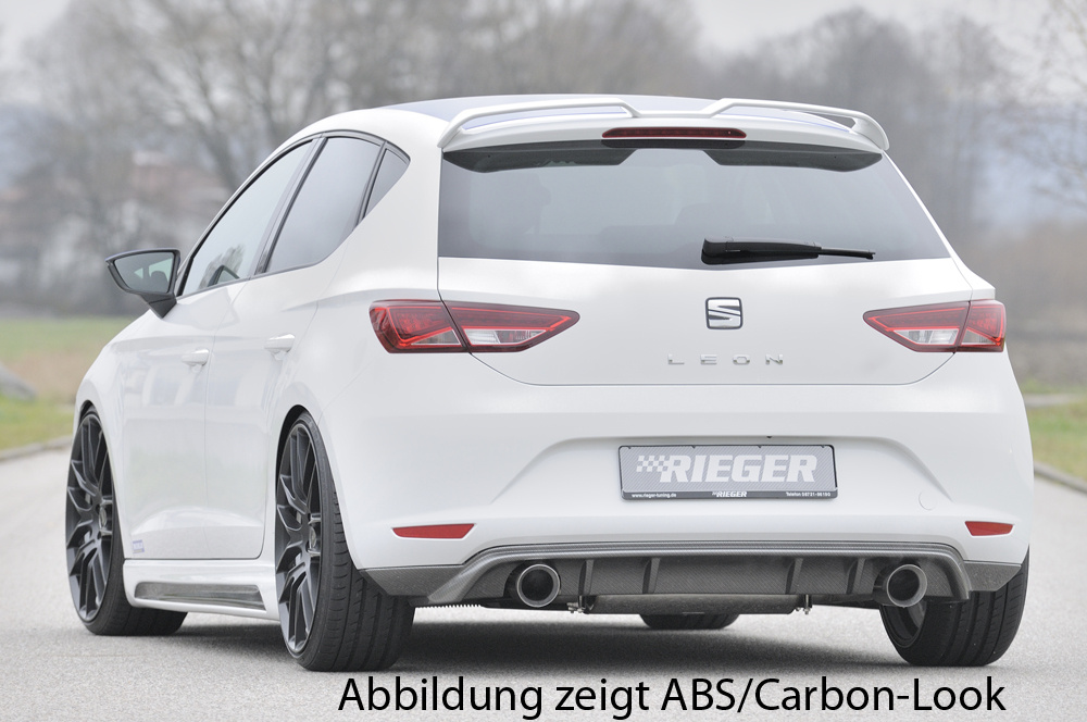 Rieger spoiler pod zadní nárazník pro Seat Leon 5F 3-dvéř. (sc), 5-dvéř. před faceliftem r.v. 10/12-12/16, plast ABS bez povrchové úpravy, pro sportovní koncovky na obou stranách 100 mm