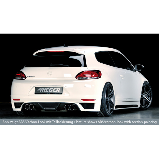 Rieger spoiler pod zadní nárazník pro Volkswagen Scirocco 3 13 2-dvéř. před faceliftem r.v. 08/08-04/14, plast ABS bez povrchové úpravy, pro dvojité koncovky na obou stranách