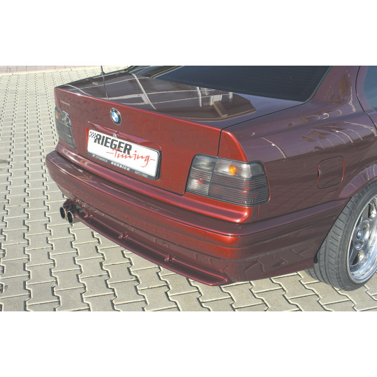 Vložka zadního nárazníku Rieger Tuning v designu M3-Look určená pro BMW řada 3 Typ E36, karoserie Kabriolet, Coupé, Sedan a Touring. Vyrobena z ABS plastu bez povrchové úpravy. Balení obsahuje montážní materiál.