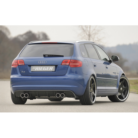 Rieger vložka zadního nárazníku pro Audi A3 8P 3-dvéř., kabriolet po faceliftu, plast ABS s povrchovou úpravou Carbon-Look, pro dvojité koncovky na obou stranách 4x76 mm