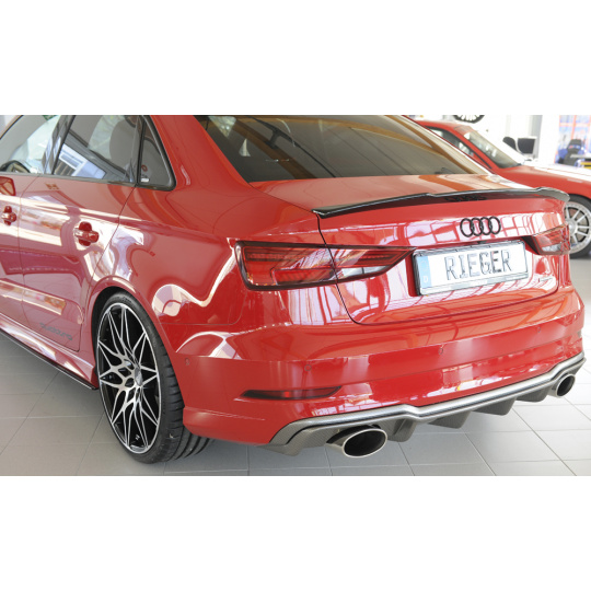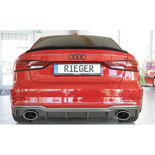 Rieger vložka zadního nárazníku pro Audi A3 8V 3-dvéř. (convertible 8V7), 5-dvéř. (sedan 8VS) po faceliftu, plast ABS s povrchovou úpravou Carbon-Look, pro sportovní koncovky na obou stranách 152x95 mm