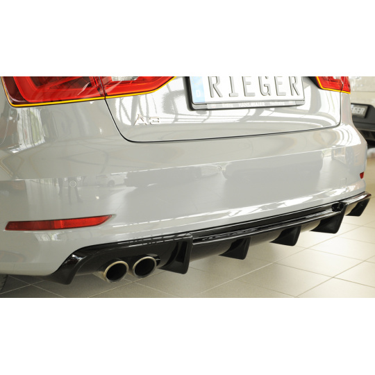 Rieger vložka zadního nárazníku pro Audi A3 8V 3-dvéř. (convertible 8V7), 5-dvéř. (sedan 8VS) před faceliftem, plast ABS lakovaný do černé lesklé barvy