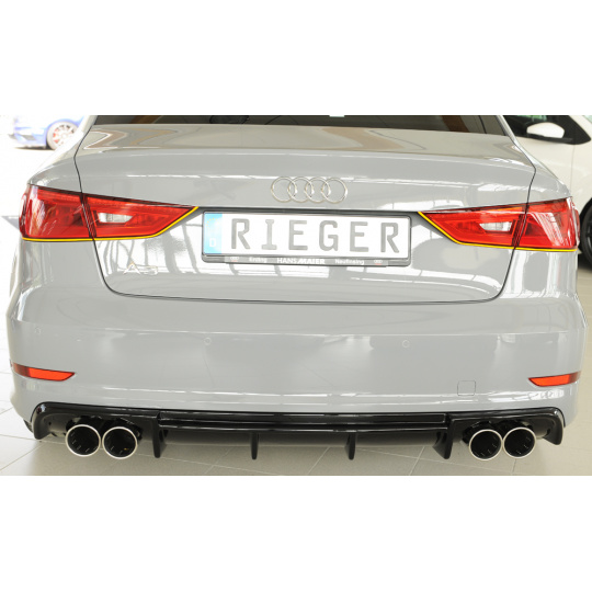 Rieger vložka zadního nárazníku pro Audi A3 8V 3-dvéř. (convertible 8V7), 5-dvéř. (sedan 8VS) před faceliftem, plast ABS lakovaný do černé lesklé barvy, pro dvojité koncovky na obou stranách 4x90 mm