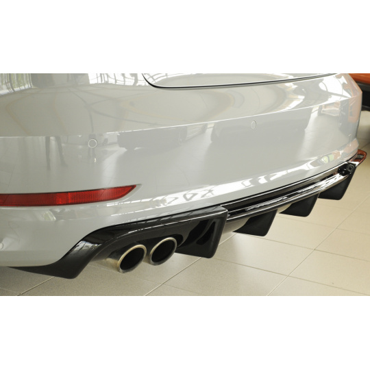 Rieger vložka zadního nárazníku pro Audi A3 8V 3-dvéř. (convertible 8V7), 5-dvéř. (sedan 8VS) před faceliftem, plast ABS lakovaný do černé lesklé barvy, pro dvojitou koncovku vlevo