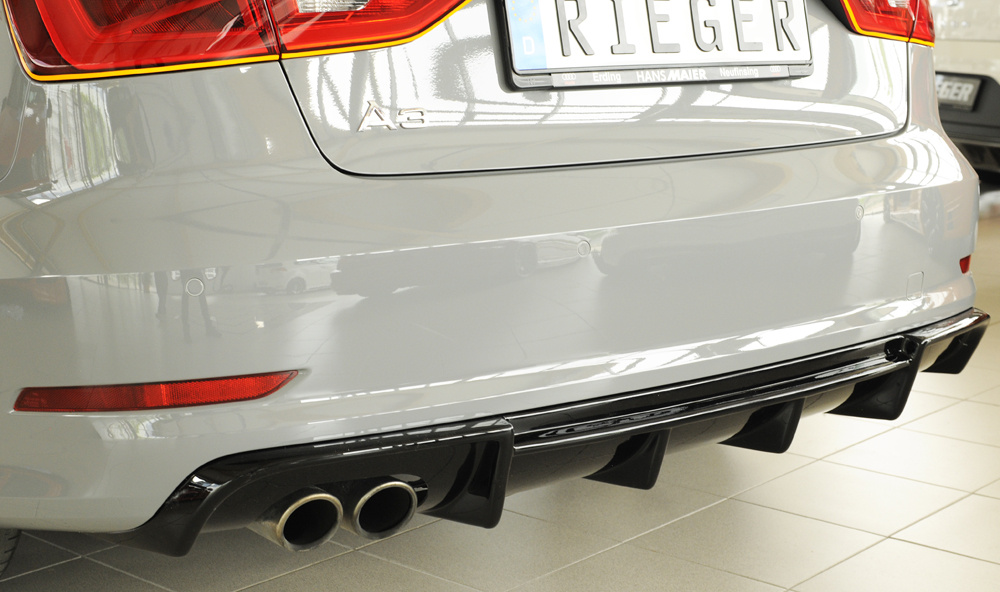 Rieger Tuning – Vložka zadního nárazníku – Audi A3 8V před faceliftem – Cabriolet 8V7/Sedan 8VS – 07/2012–08/2016 – ABS – černý lesk