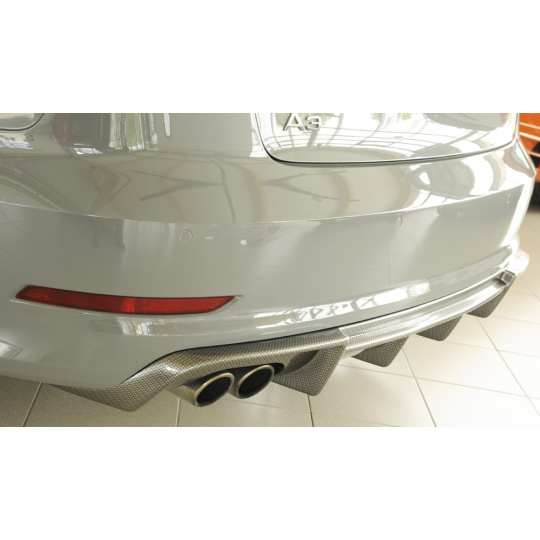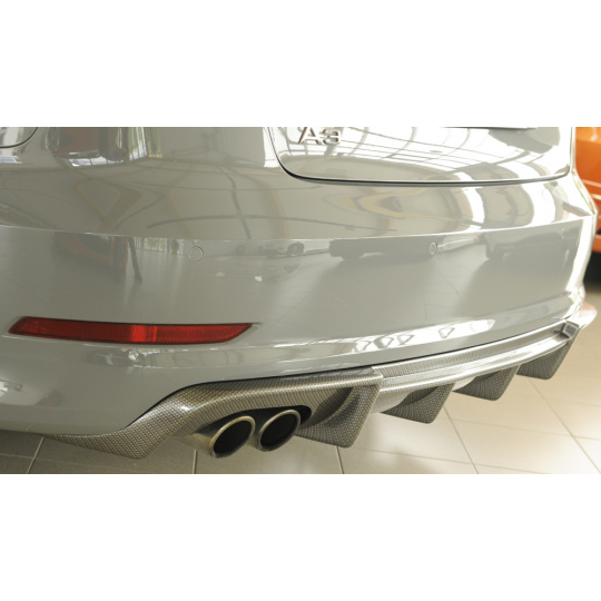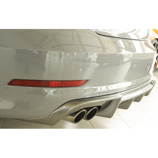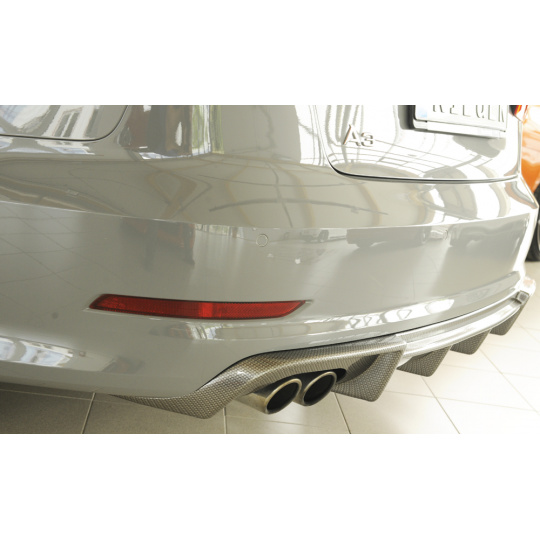 Rieger vložka zadního nárazníku pro Audi A3 8V 3-dvéř. (convertible 8V7), 5-dvéř. (sedan 8VS) před faceliftem, plast ABS s povrchovou úpravou Carbon-Look, pro dvojitou koncovku vlevo