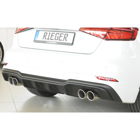 Rieger vložka zadního nárazníku pro Audi A3 8V 3-dvéř. (hatchback 8V1), 5-dvéř. (sportback 8VA) po faceliftu, plast ABS bez povrchové úpravy, pro dvojité koncovky na obou stranách 4x90 mm