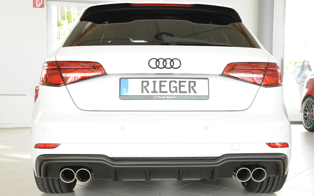Rieger vložka zadního nárazníku pro Audi A3 8V 3-dvéř. (hatchback 8V1), 5-dvéř. (sportback 8VA) po faceliftu, plast ABS bez povrchové úpravy, pro dvojité koncovky na obou stranách 4x90 mm