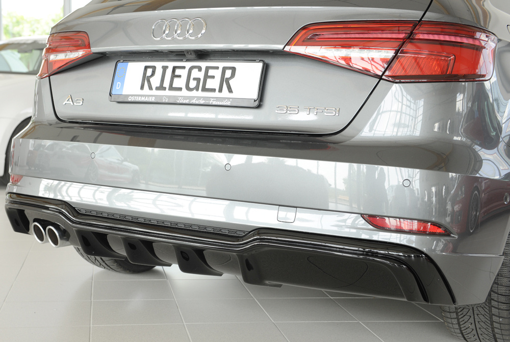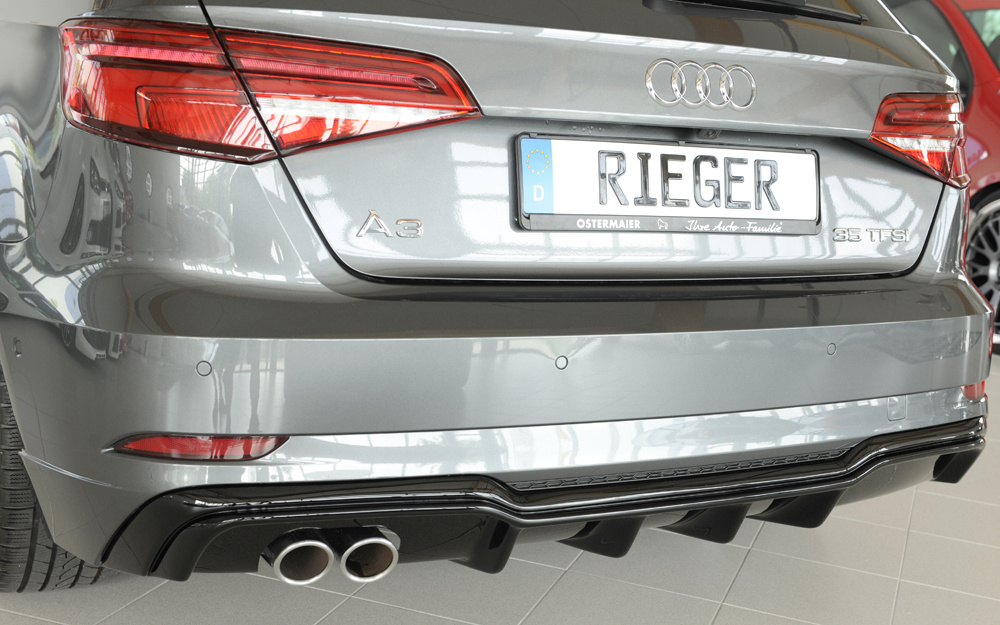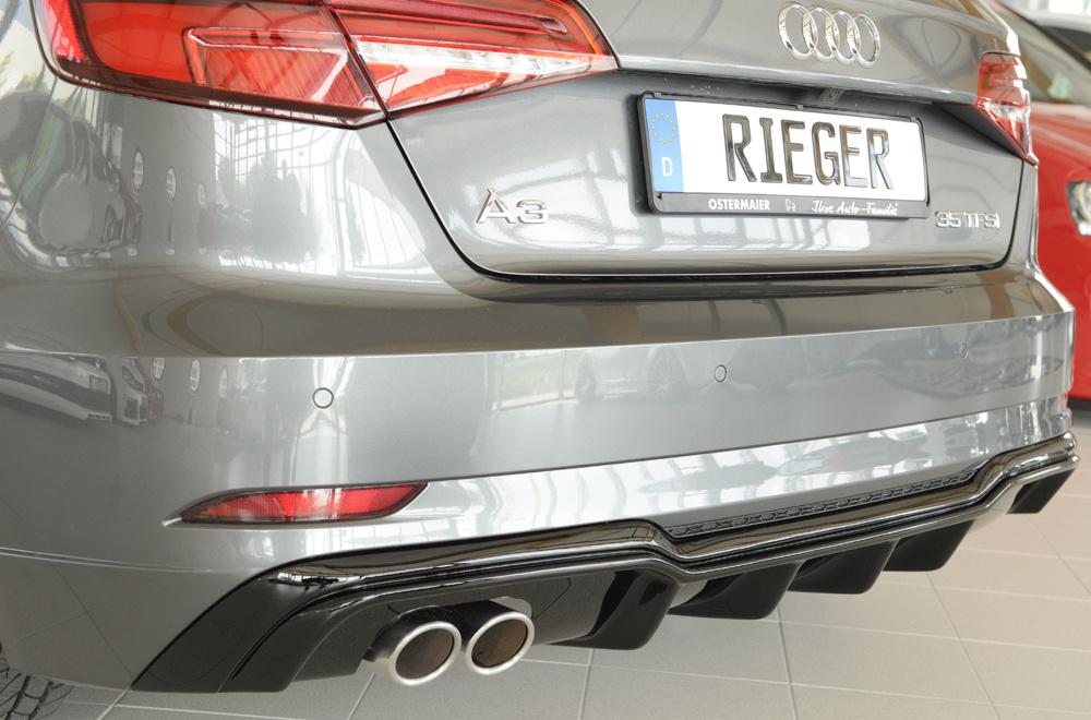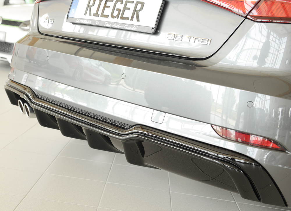 Rieger Tuning – Vložka zadního nárazníku – Audi A3 8V po faceliftu – Hatchback 8V1/Sportback 8VA – od 09/2016 – ABS – černý lesk