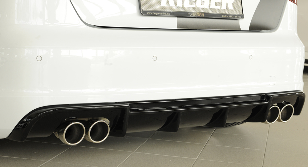 Rieger vložka zadního nárazníku pro Audi A3 8V 3-dvéř. (hatchback 8V1), 5-dvéř. (sportback 8VA) před faceliftem, plast ABS lakovaný do černé lesklé barvy, pro dvojité koncovky na obou stranách 4x90 mm
