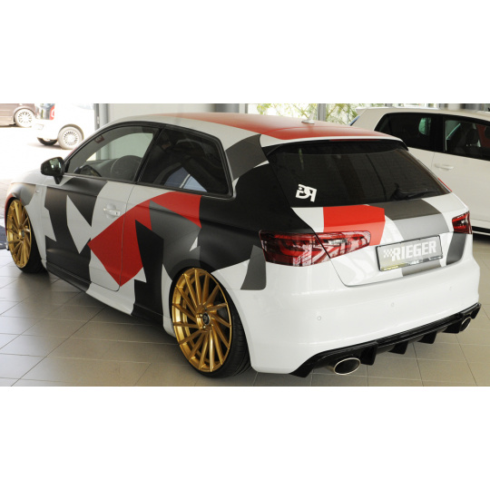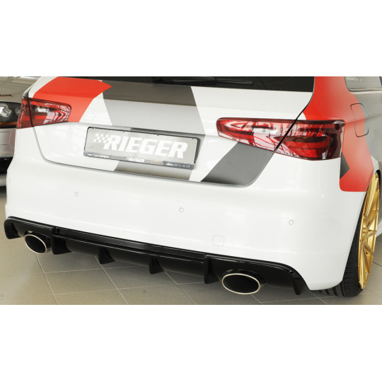 Rieger vložka zadního nárazníku pro Audi A3 8V 3-dvéř. (hatchback 8V1), 5-dvéř. (sportback 8VA) před faceliftem, plast ABS lakovaný do černé lesklé barvy, pro sportovní koncovky na obou stranách 152x95 mm