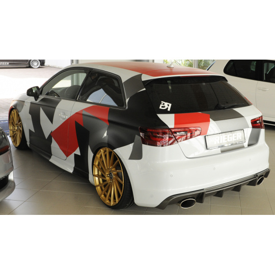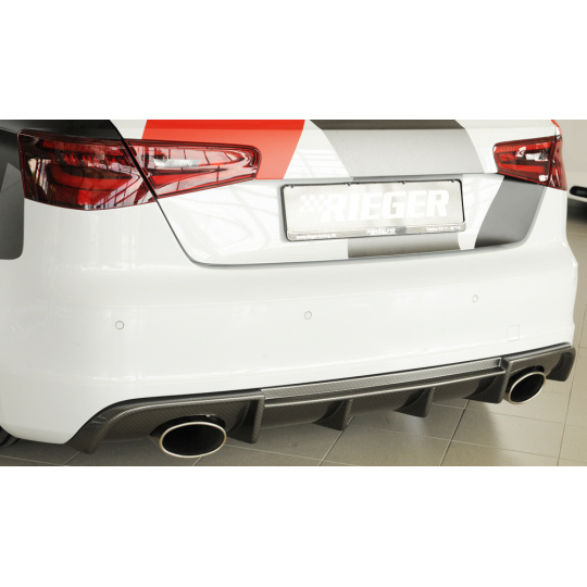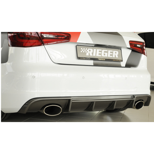 Rieger vložka zadního nárazníku pro Audi A3 8V 3-dvéř. (hatchback 8V1), 5-dvéř. (sportback 8VA) před faceliftem, plast ABS s povrchovou úpravou Carbon-Look, pro sportovní koncovky na obou stranách 152x95 mm