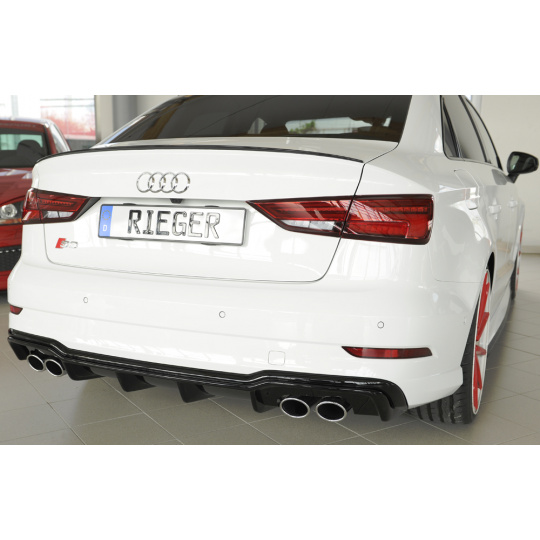 Rieger vložka zadního nárazníku pro Audi A3 S3 8V 3-dvéř. (convertible 8V7), 5-dvéř. (sedan 8VS) po faceliftu, plast ABS lakovaný do černé lesklé barvy, pro orig. dvojité koncovky na obou stranách 4x90x72 mm