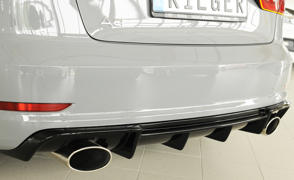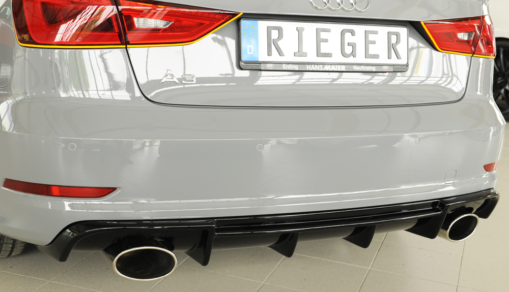 Rieger Tuning – Vložka zadního nárazníku – Audi A3 S3 8V před faceliftem – Cabriolet 8V7 / Sedan 8VS – 05/2013–08/2016 – ABS – černý lesk
