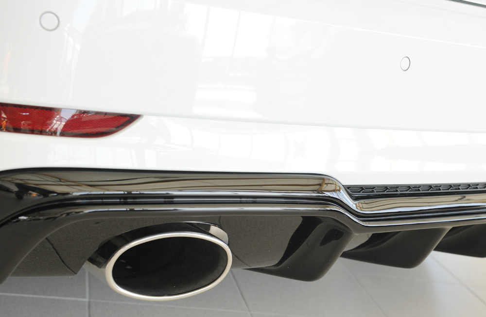 Rieger vložka zadního nárazníku pro Audi A3 S3 8V 3-dvéř. (hatchback 8V1), 5-dvéř. (sportback 8VA) po faceliftu, plast ABS lakovaný do černé lesklé barvy, pro sportovní koncovky na obou stranách 152x95 mm
