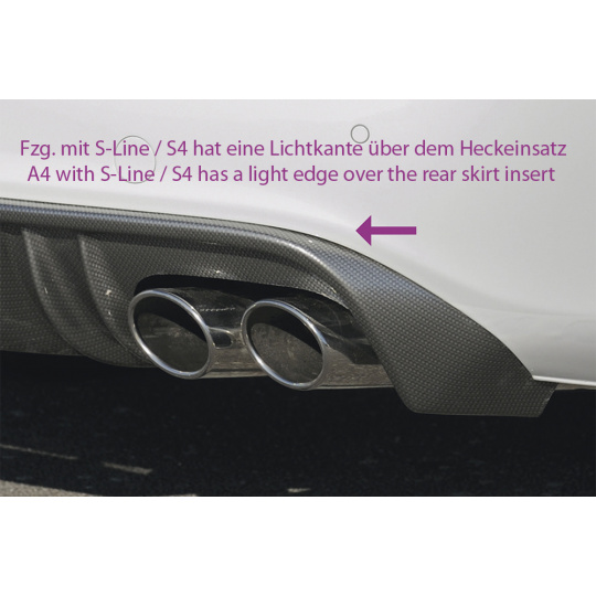 Rieger vložka zadního nárazníku pro Audi A4 B8, B81 avant, sedan před faceliftem, plast ABS bez povrchové úpravy, mimo S-Line, pro sportovní koncovky na obou stranách 4x115x85 mm