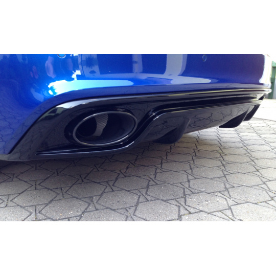 Rieger vložka zadního nárazníku pro Audi A5 B8, B81 kabriolet, kupé po faceliftu, plast ABS lakovaný do černé lesklé barvy, S-Line, pro oválné výfukové deflektory na obou stranách 185x120 mm