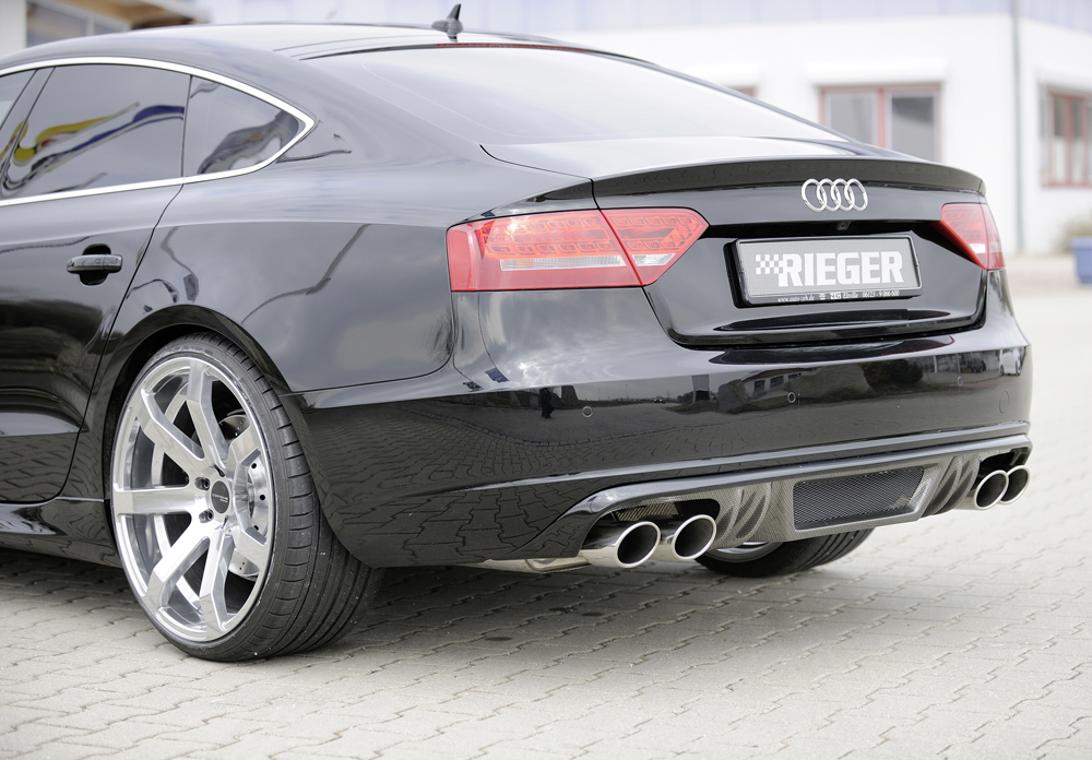 Rieger vložka zadního nárazníku pro Audi A5 B8, B81 Sportback před faceliftem, plast ABS s povrchovou úpravou Carbon-Look, mimo S-Line, pro dvojité koncovky na obou stranách 4x115x85 mm