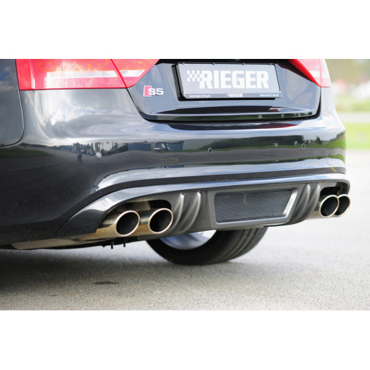 Rieger vložka zadního nárazníku pro Audi A5 B8, B81 Sportback před faceliftem, plast ABS s povrchovou úpravou Carbon-Look, S-Line, pro sportovní koncovky na obou stranách 4x115x85 mm