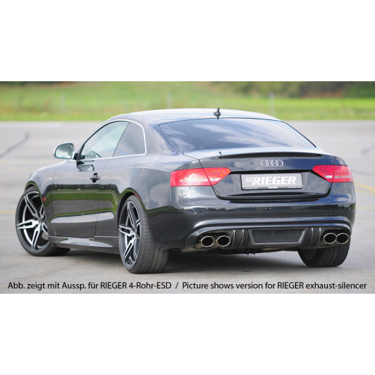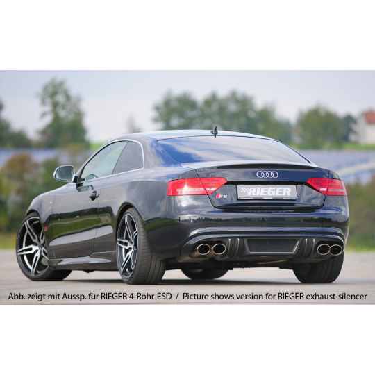 Rieger vložka zadního nárazníku pro Audi A5 S5 B8, B81 kabriolet, kupé před faceliftem, plast ABS s povrchovou úpravou Carbon-Look, S-Line, pro orig. dvojité koncovky na obou stranách