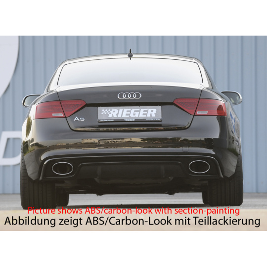 Rieger vložka zadního nárazníku pro Audi A5 S5 B8, B81 Sportback po faceliftu, plast ABS s povrchovou úpravou Carbon-Look, S-Line, pro oválné výfukové deflektory na obou stranách 185x120 mm