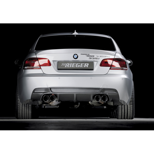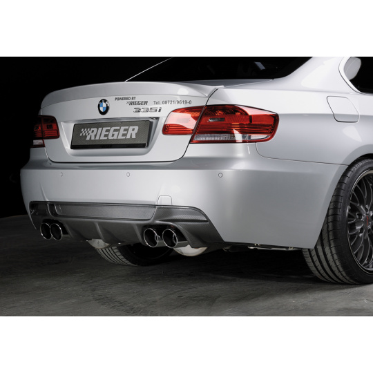 Rieger vložka zadního nárazníku pro BMW řada 3 E92, E93 kabriolet, kupé vč. faceliftu, plast ABS s povrchovou úpravou Carbon-Look, pro dvojité koncovky na obou stranách 4x90 mm